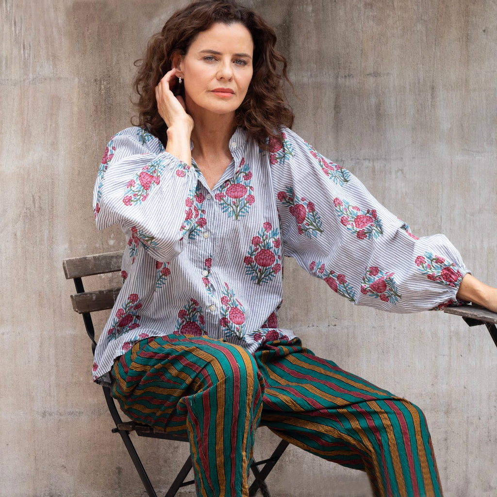 Relaxed in style and made from pure cotton, this fabulous pants feature side pockets and an elasticated waist for maximum comfort. Wear with our silk singlets and shirts.
